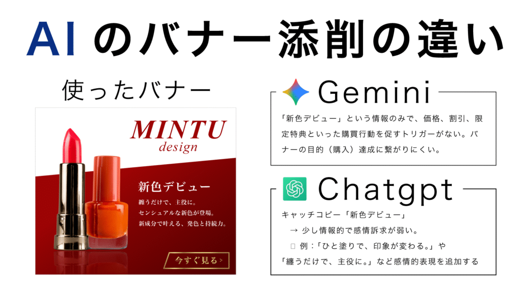 まだ始まったばかりのサイトですが、AI時代のデザインのあり方や、個人で働くためのヒントを少しずつ共有していきます。デザインで迷ったときにAIを使ったりする事のメリット、GeminiとChatgptの違いなどをまとめた記事も作成しています!